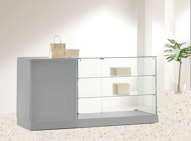 Mostrador vitrina y mostrador ciego bandeja extraible.