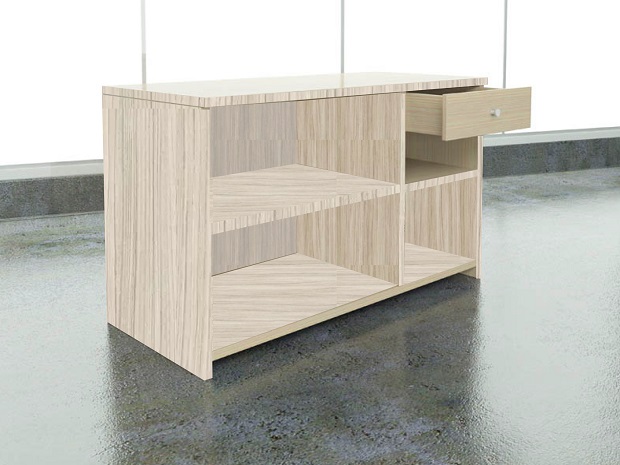 Mostrador para negocios Mostrador de madera para tiendas y negocios. Mostrador con cubierta de madera. La cubierta, laterales y travesaños de 30 m/m de grueso. Decoración frontal de plafones de madera. 1 Cajón con correderas de cierre suave Interior con entrepaños Jaladeras a elegir Niveladores Color y material a elegir.