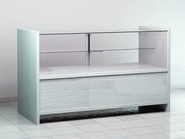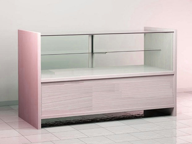Mostrador para comercios FDM11 Mostrador vitrina de cristal. Costados y travesaños de 30 m/m. Mostrador con cubierta de cristal de 8 m/m. Frontal de cristal de 6 m/m. Vitrina de 450 m/m. de altura. Entrepaño intermedio de cristal de 350 m/m. Frontal liso de madera. 1 Cajón con correderas de cierre suave Jaladeras a elegir Niveladores Colores y materiales a elegir.