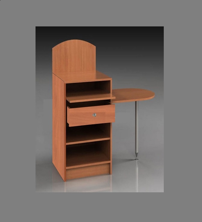 Mostrador punto de venta FDM21 Mostrador para la caja con mesa de trabajo. Mostrador de recepción, con mesa lateral. Medidas del mostrador: Cuerpo central: 1200 H x 600 A x 600 F m/m. Mesa de trabajo: 750 H x 700 A x 600 F m/m. Total: 1300 m/m. Pie de aluminio. La mesa puede ser a la derecha ó izquierda. Cuerpo central. Bandeja extraíble para teclado. 1 Entrepaño graduable. 1 Cajón con correderas de cierre suave. Panel ranurado 100 m/m. Perfil de aluminio. Altura del dado de 0.90m Jaladera a elegir. Niveladores. Color y material a elegir.